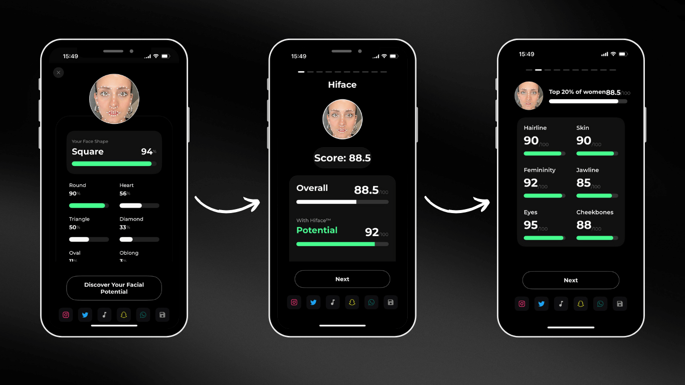 The Hiface app uses advanced AI technology. You just need to upload a selfie. Then it follows these steps: